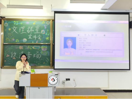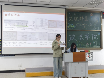 宣讲人王思雨就文艺活动与法员工活向大家分享了自己的心得体会。王思雨学姐结合自身多彩的实践经历、丰富的校园文艺活动经验,尤其鼓励同学们踊跃参与学术竞赛和文体活动。她说,学术竞赛不仅能加深锻炼逻辑思维和创新能力,还能结识志同道合的伙伴,拓展人脉资源。而文体活动则有助于丰富课余生活,有一个兴趣爱好会让大学更加丰富多彩,鼓励大家走出寝室,多参加文娱活动,不仅培养团队合作精神,还能缓解学习压力。此外,王思雨学姐特别鼓励同学们踊跃参与暑期社会实践,暑期社会实践是将理论知识与社会实际紧密结合的重要契机。