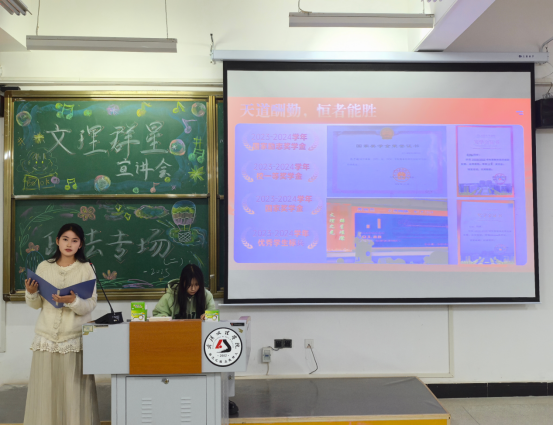 宣讲人曾媛结合自身经历分享了员工干部工作经验。入学伊始,她便积极投身于分团委宣传部的工作,秉持认真负责的态度,发扬团队协作精神,出色地完成了各项任务,也讲述了她成为员工干部三年来经历的困难及解决方法,她说每一次主动的选择、每一份真诚的投入,都会在未来某个时刻回馈你惊喜。最后,曾媛学姐将“山不让尘,川不辞盈”作为结语,不必追求完美,因为真实的成长往往藏在笨拙的坚持里。四年后回望时,愿大家能如她一样能笑着说:“我没有辜负这段最好的时光”。