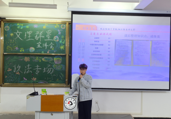 宣讲人金钟分享了自己的法考与考公心得,对于学习方法,金钟学长从自身出发重点分享了法考备考的一些经验。谈到专业学习,金钟学长从抢夺和抢劫的相同点和不同点出发,告诉了我们法考知识的细碎,提醒我们要尽早了解各类专业知识以及考察重点。在此基础上,他分享自己如何制定学习计划、如何高效利用时间、如何克服学习中的困难、如何调整心态等经验,鼓励大家明确每个阶段的任务与目标,勇于面对挑战,全面发展。
