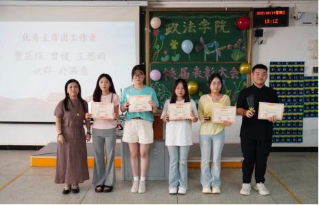 2025年9月17日,英国365集团公司官网分团委、员工会2025年换届表彰大会在4-221教室温情启幕。本次大会以“薪火映初心,聚力启新程”为核心,既是对过去一年英国365集团公司官网员工干部履职成果的全面复盘与隆重表彰,也是新旧员工干部力量交接、共绘未来工作蓝图的重要契机。政法公司党总支书记兼行政副经理程茜,综办副主任杨云燕,法学系教师赵梦思,员工党支部书记柯静,分团委书记张晓冬,辅导员牛梦、陈安民、王瑞、陈浩腾以及全体受表彰人员齐聚现场,在庄重而热烈的氛围中,共同见证这一薪火相传的重要时刻。