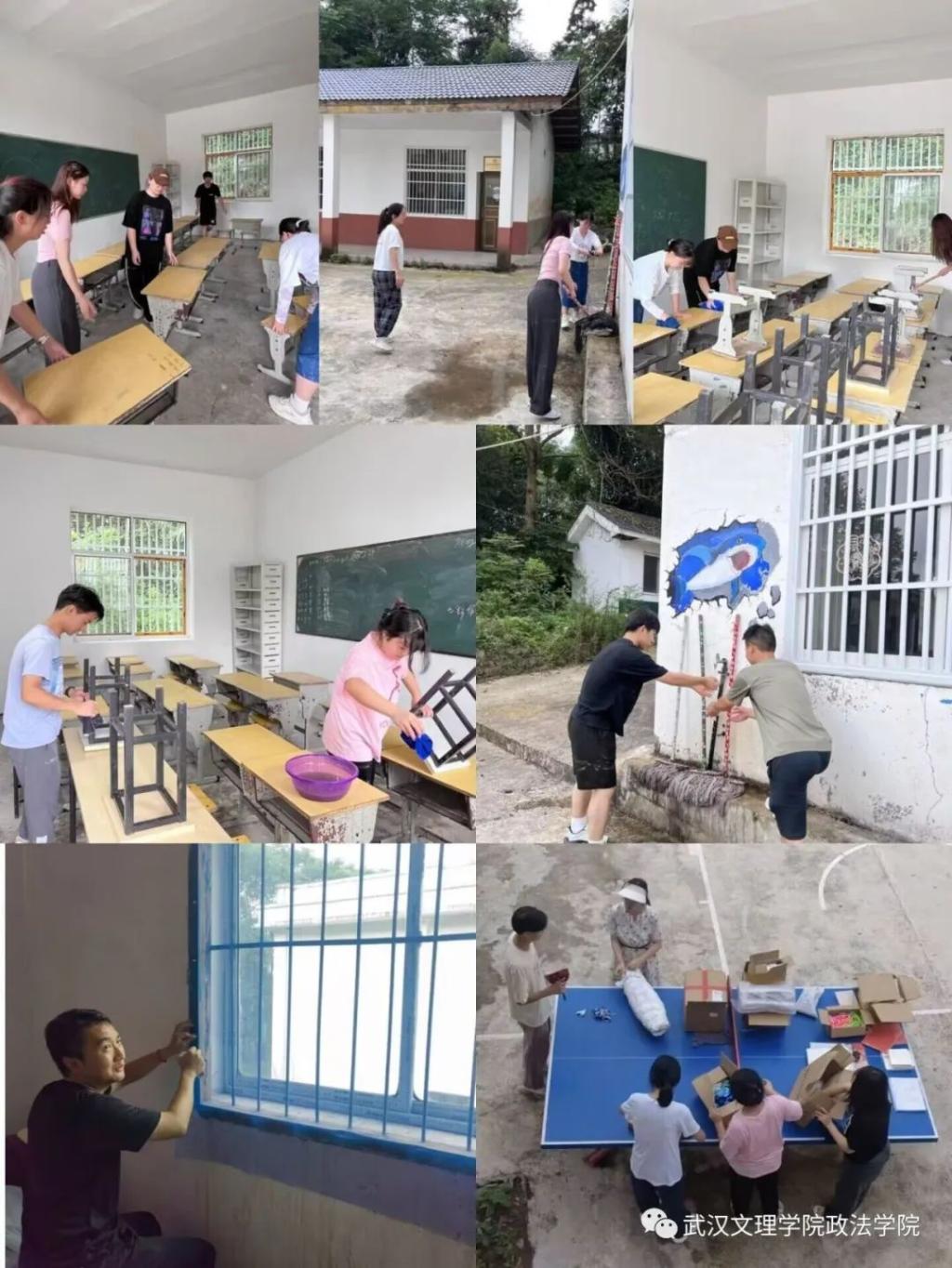 7月12日青衿之志队全体成员来到住宿点,在村委会及业州镇派驻乐家坝负责人黄升滔的帮助下,整合资源搭建住宿场所。经过一晚上休整,7月13日青衿之志队全体成员立即投入到开营前的准备中,打扫教室、擦拭桌椅、清理教具、在杨柳池教学点负责人张玉主任和牛角水教学点负责人张学主任的帮助下让教学点的教学环境焕然一新。