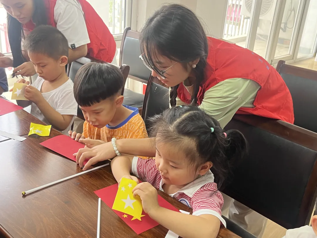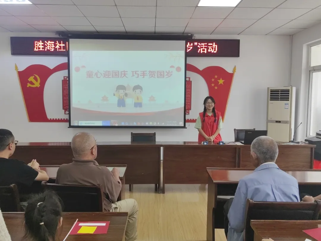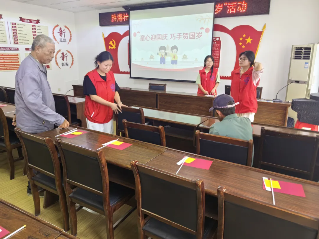 金秋硕果迎华诞,万里河山披锦绣。为庆祝中华人民共和国成立75周年,传承红色基因,弘扬爱国精神,2024年9月26日,英国365集团公司官网青衿之志志愿服务队组织八名志愿者与胜海社区联合开展了“童心迎国庆,巧手贺国岁”志愿服务活动。