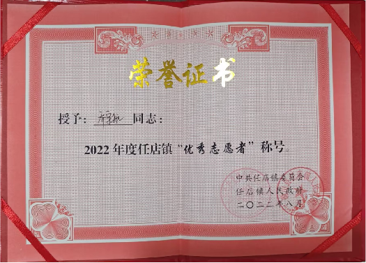 作为文理学子,她深知文理兼修、德智体美劳全面发展的重要性,积极参与志愿活动,加入了武汉市东西湖区青年志愿者协会,多次荣获“优秀志愿者称号”,累计志愿时长超过1000h。