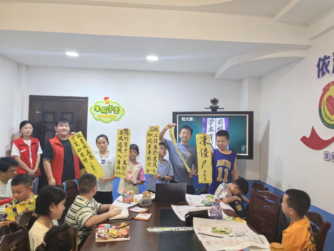 最后,志愿者吴睿伊应各位小朋友的要求,为每一位小朋友都留下了一幅“墨宝”。一个个成语、一句句诗词,不仅是小朋友们对自己未来生活的向往,也是志愿者老师们对他们的期望。