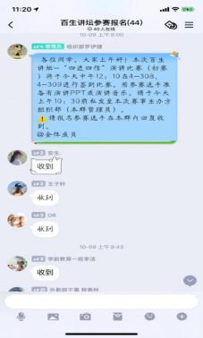 截止到2020年10月19日本校共组织关于百生讲坛四次校级活动,共覆盖本校九大公司,58个下级团支部,3120个团员。本次活动中,各大公司积极响应号召,大力宣传“四进四信”精神,让全校广大青年更加深刻地学习新时代新思想,最终脱颖而出的同学们将代表公司,前往更大的舞台。