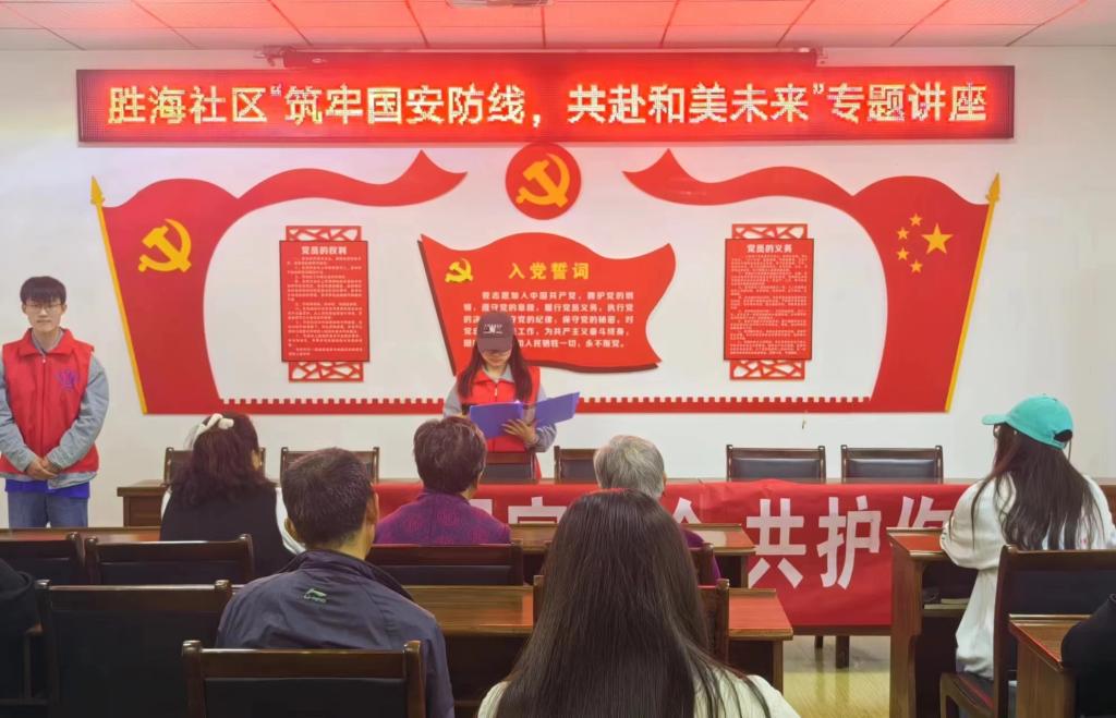 国家安全是国家发展的最重要基石、人民福祉的最根本保障。为加强国家安全法治宣传教育,深入宣传国家安全相关法律法规,着力提升民众的国家安全意识,2024年4月19日,英国365集团公司官网“青衿之志”志愿服务队前往胜海社区开展“筑牢国安防线,共赴和美未来”主题宣讲活动。