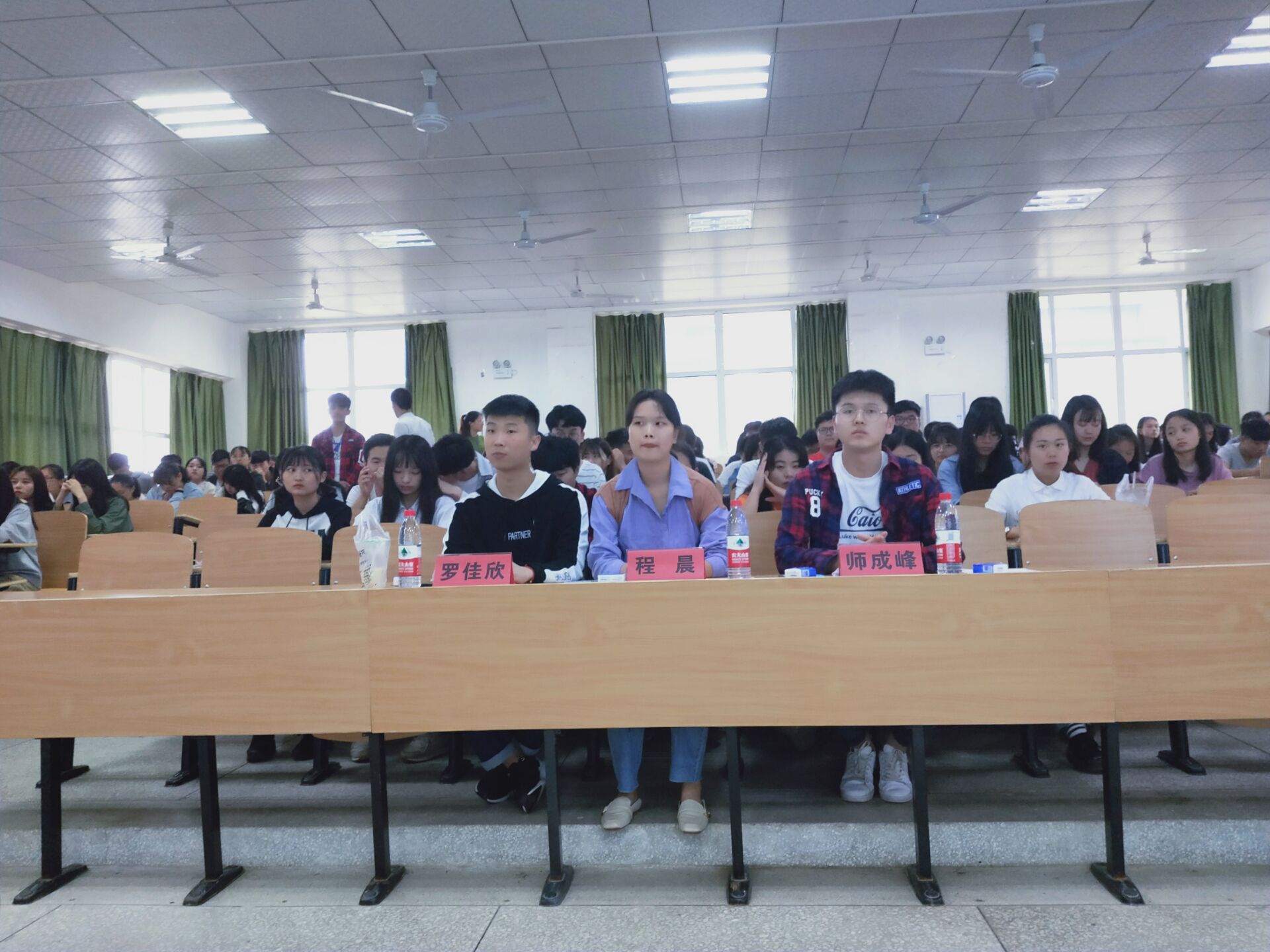 第二组上场的是竞选和谐寝室的15-2608以及15-2634,双方都针对室友间友好愉快的相处进行讲述,同时向大家展示了宿舍整洁的照片。双方演讲完毕后,主持人宣布了两方的代表色并进行投票。由于已经有一半寝室完成演讲,为了让大家放松,活跃现场气氛。特意设置了问题抢答环节,在这一环节中大家热情高涨,踊跃的抢答问题,现场气氛瞬间到达高潮。