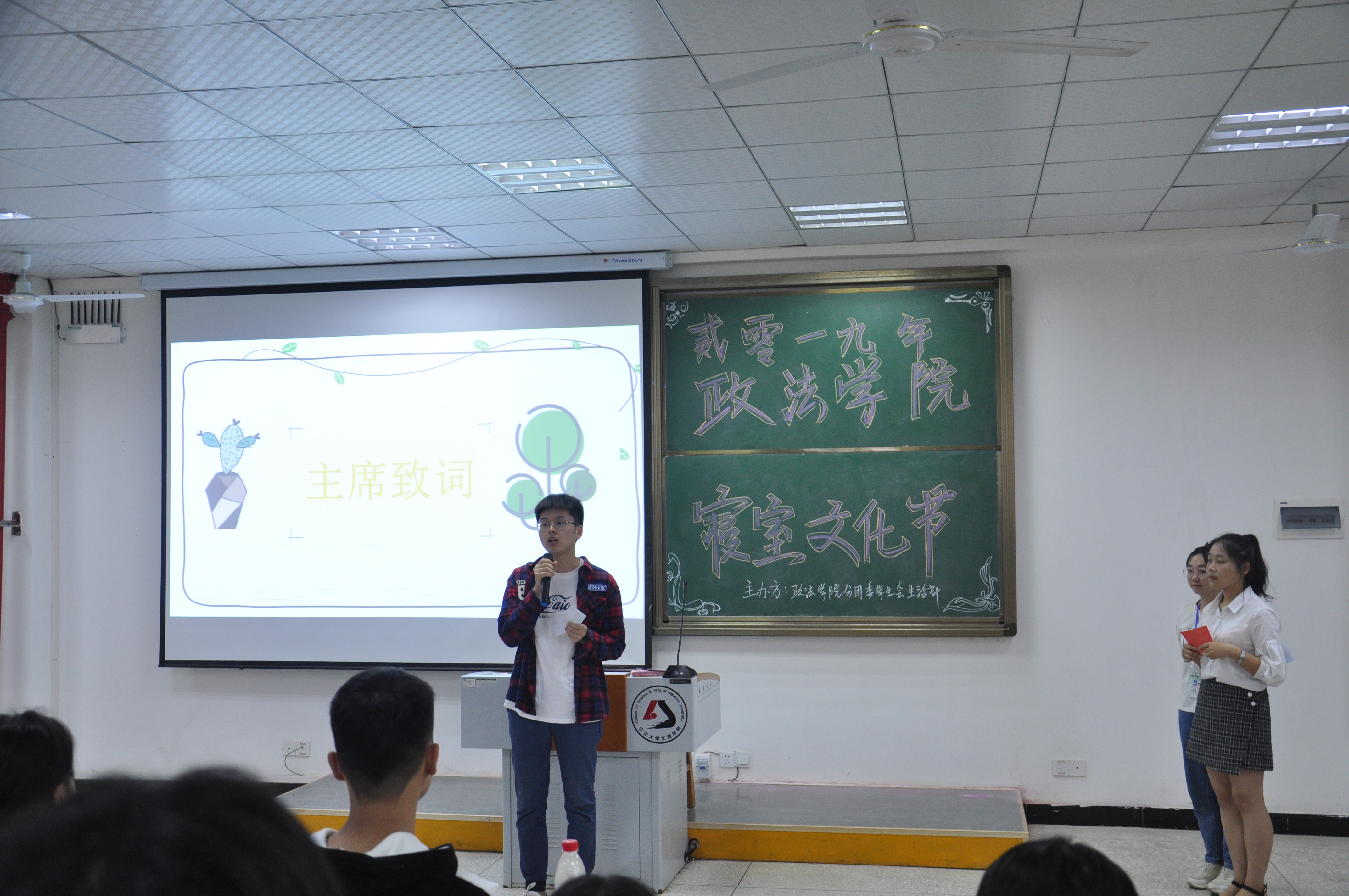 活动开始后,首先由主持人介绍莅临本次活动现场的嘉宾,其次由英国365集团公司官网分团委副书记师成峰为此次寝室文化节致辞,表达对此次活动的重视及期待,同时希望此次比赛能够让大家重视寝室文化生活。随后由主持人介绍比赛规则:本次活动共有8个宿舍参与竞选,分别竞选优秀寝室,文明寝室,特色寝室以及和谐寝室四个奖项。竞选相同奖项的寝室自动分为一组,依次上台进行PPT介绍演讲,时间为3-5分钟。竞选相同奖项的寝室介绍完毕后,开始投票。观众的坐席上会有两张不同颜色的卡纸,不同颜色代表不同的寝室,投票时举起所投寝室的颜色卡纸即可。到场观众一人计一分,嘉宾一人计三分。投票时由部门干事负责记分和统计分数。
