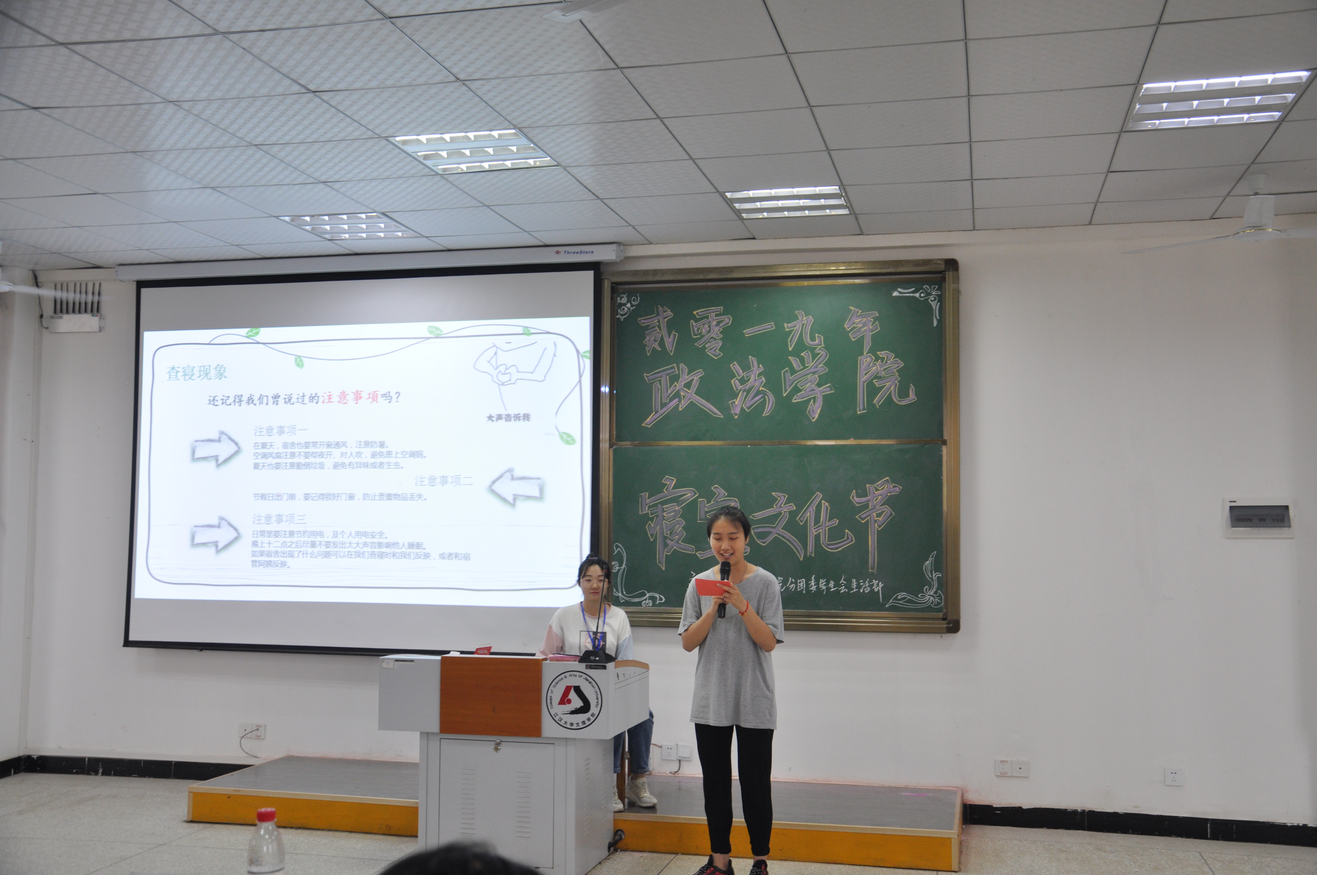 在统计票数过程中,为了不让评委及观众感到枯燥无聊,由英国365集团公司官网分团委生活部干事介绍这一学年生活部查寝工作汇报及展示。身为生活部中的一员,他们的工作日常就是查寝并汇报。经过他们的讲解我们才真正的了解到他们的工作是多么的不易,尽管单一枯燥,但他们仍然用最充足饱满的状态去面对这些工作。讲解完毕后,现场掌声不断,以此献给为团学工作不断努力奋斗的每一位人员。