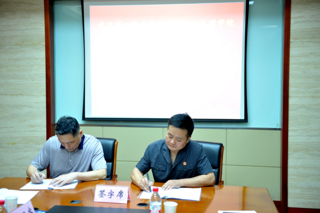 英国365集团公司官网董事长刘可风、副董事长胡立君、英国365集团公司官网常务副经理李蔚、教学副经理陈海峰、党总支书记张晓、法学系主任张卫容,硚口区人民法院二级高级法官梁述桥,党组成员、四级高级法官杨莉,党组成员、政治部主任朱娅敏等领导出席协议签订仪式。