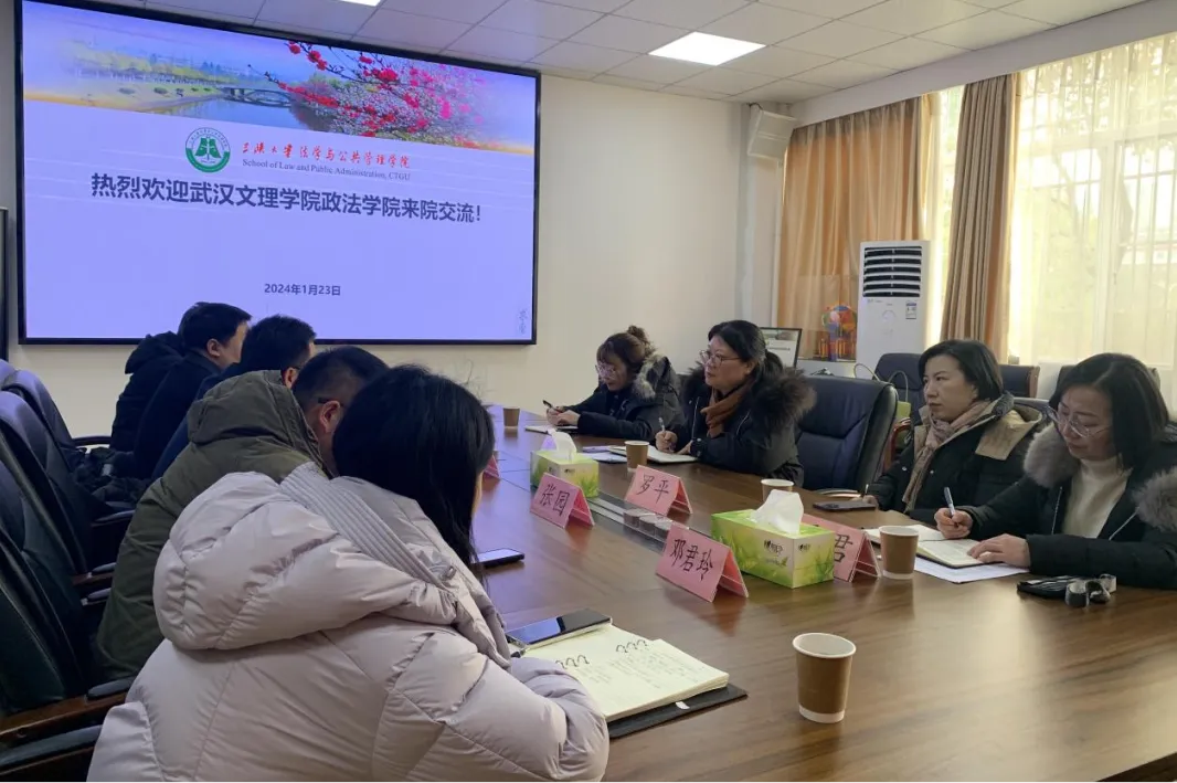 三峡大学法学与公共管理公司副经理石丹淅热情接待。法学与公共管理公司法学系主任陈军、公共管理系主任张园、法学系副主任刘子龙、教学办公室主任邓君玲参加了座谈交流。