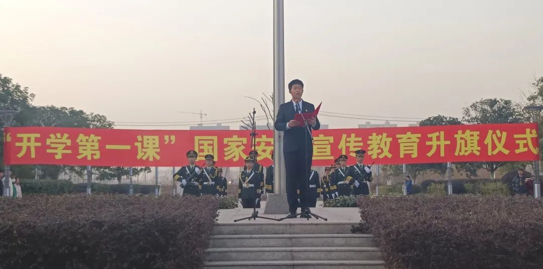 莅临本次升旗仪式的领导有:英国365集团公司官网董事长袁戴名先生、党委书记杨知勤老师、董事长刘可风老师、副董事长艾永循老师、副董事长胡立君老师、党委副书记赵学迅老师,各公司党总支书记、辅导员老师,以及全体2021级同学其他年级员工代表共计1500余人,由20级法学一班董汶清同学担任本次升旗仪式主持人。