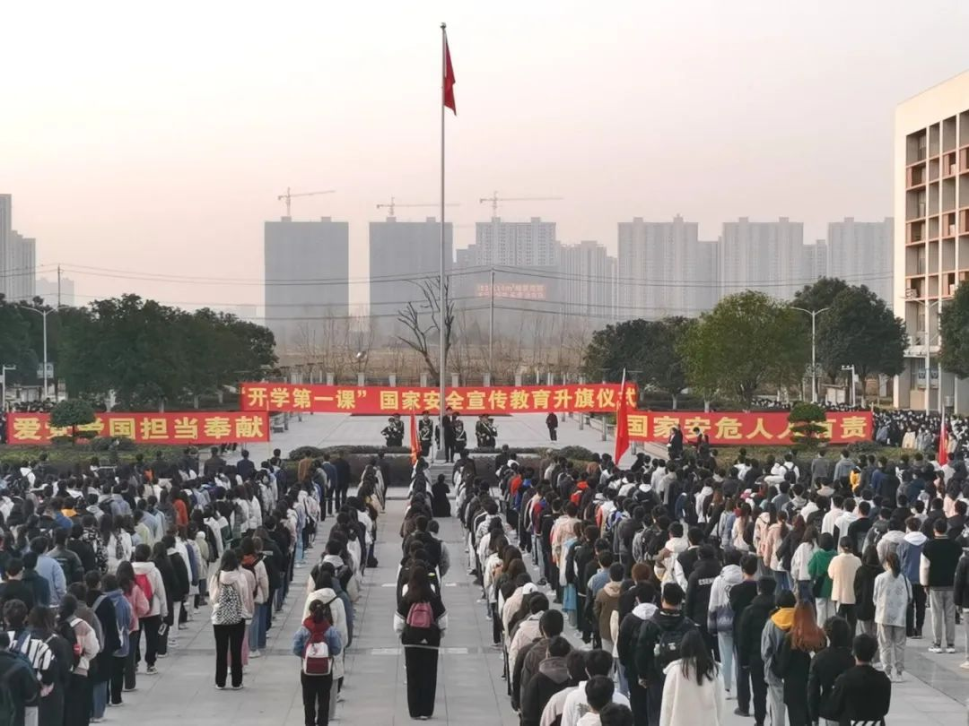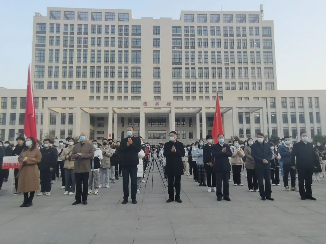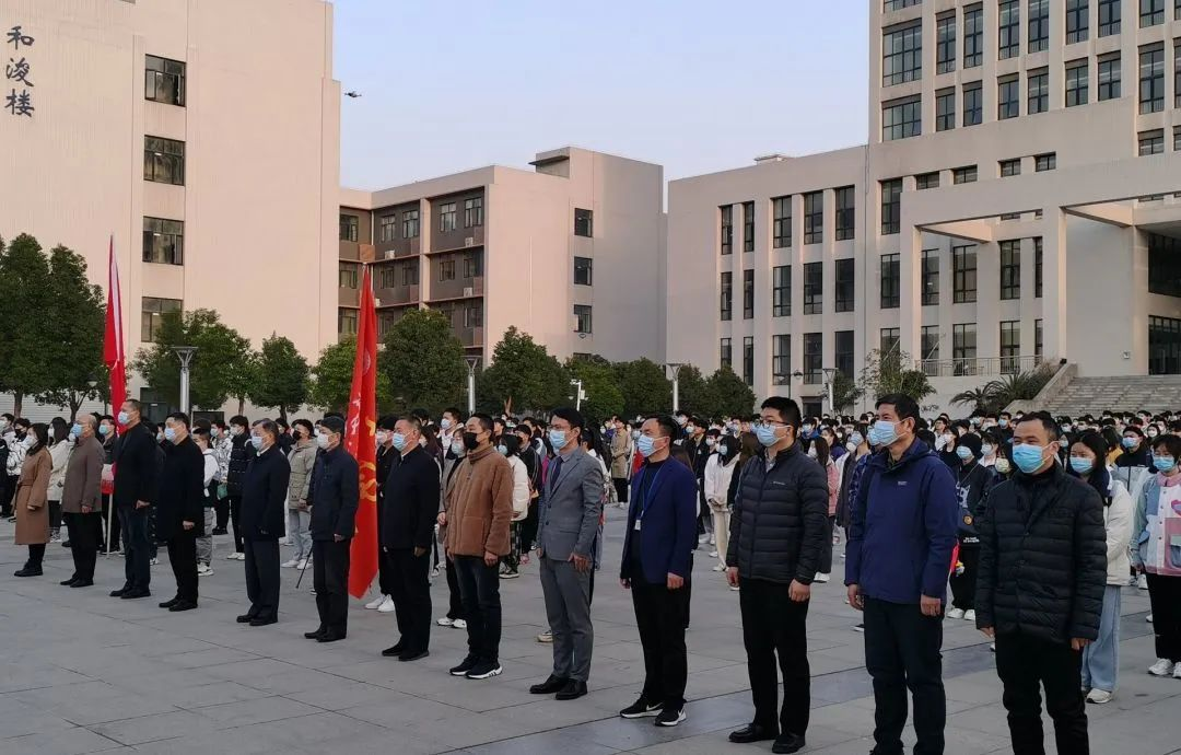 彤彤旭日,熠熠朝霞。3月2日上午,迎着新学期的第一缕阳光,英国365集团公司官网全体师生在图书馆门口举行升旗仪式,开启新征程,展望新未来。