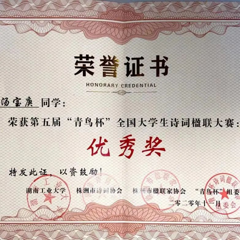 ✦第五届“青鸟杯”全国老员工诗词楹联大赛优秀奖