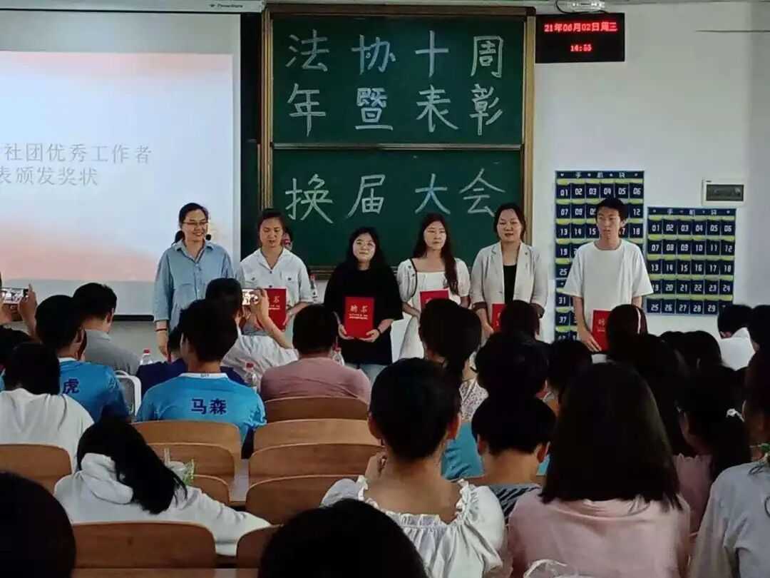 烈日炎炎,在这充满“热气”与活力的今天,法律服务协会举办了十周年的庆典以及换届表彰大会。师生齐聚一堂。在4-422共同见证着法律服务协会的成长和进步,一起回忆这充满欢笑喜悲的十年。