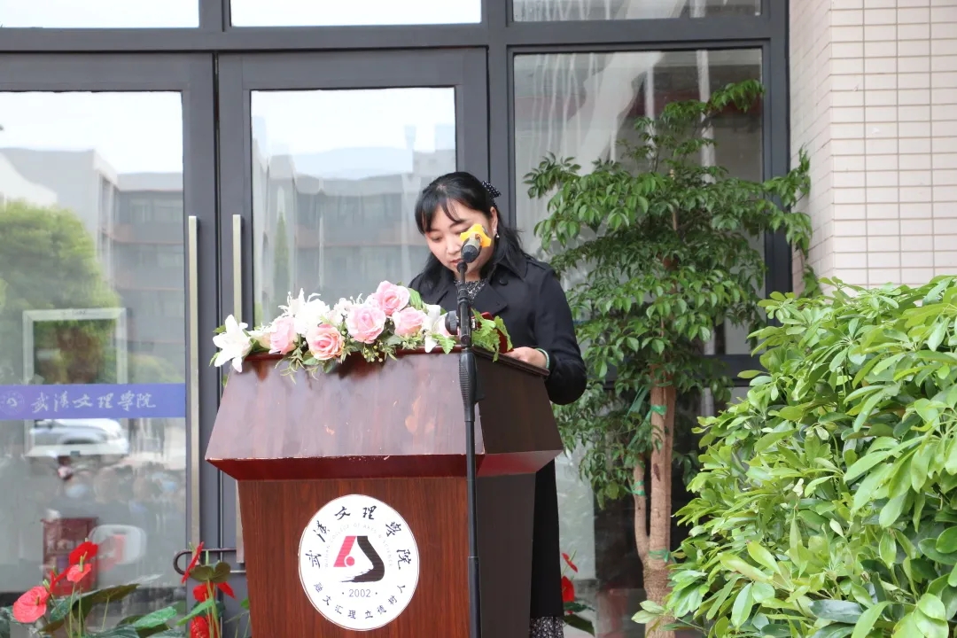 教育公司副经理贺霞代表全院师生发言