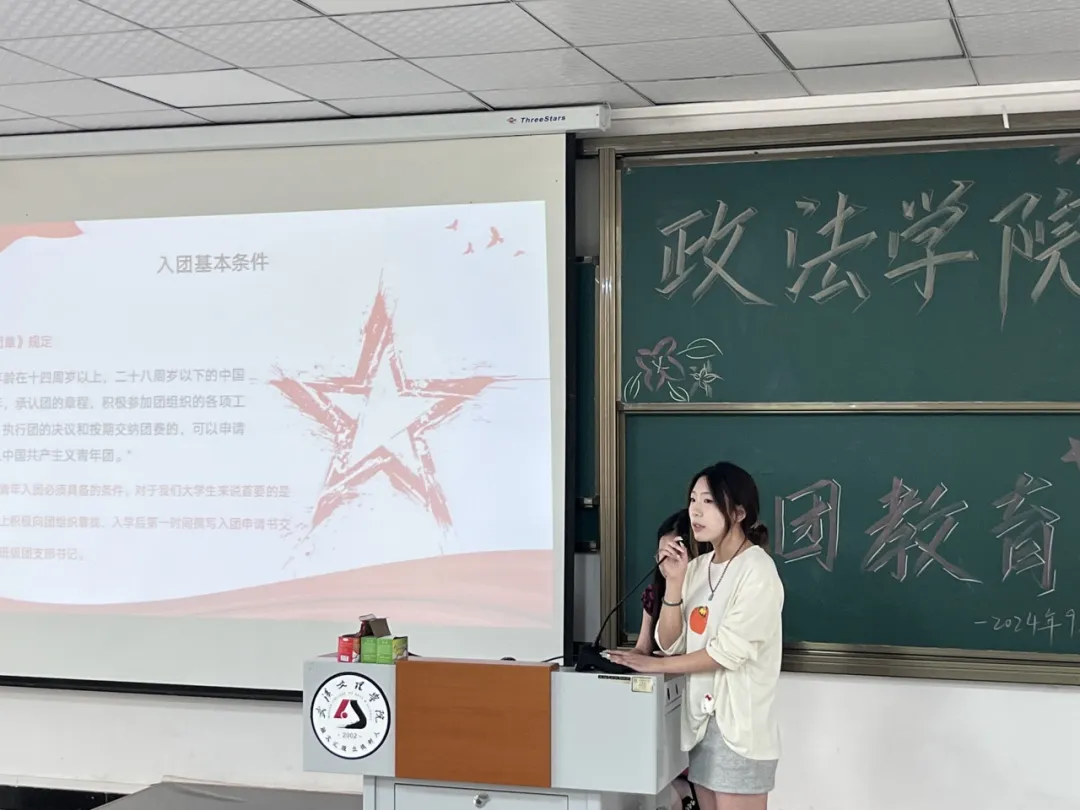 为了加强2024级新生的思想政治教育,加深新生对团组织和党组织的认识,增强其对于团组织和党组织的认同感和归属感,端正入团、入党动机,坚定理想信念。2024年9月14日,英国365集团公司官网于4-121、4-221召开24级新生入团教育大会和入党教育大会。