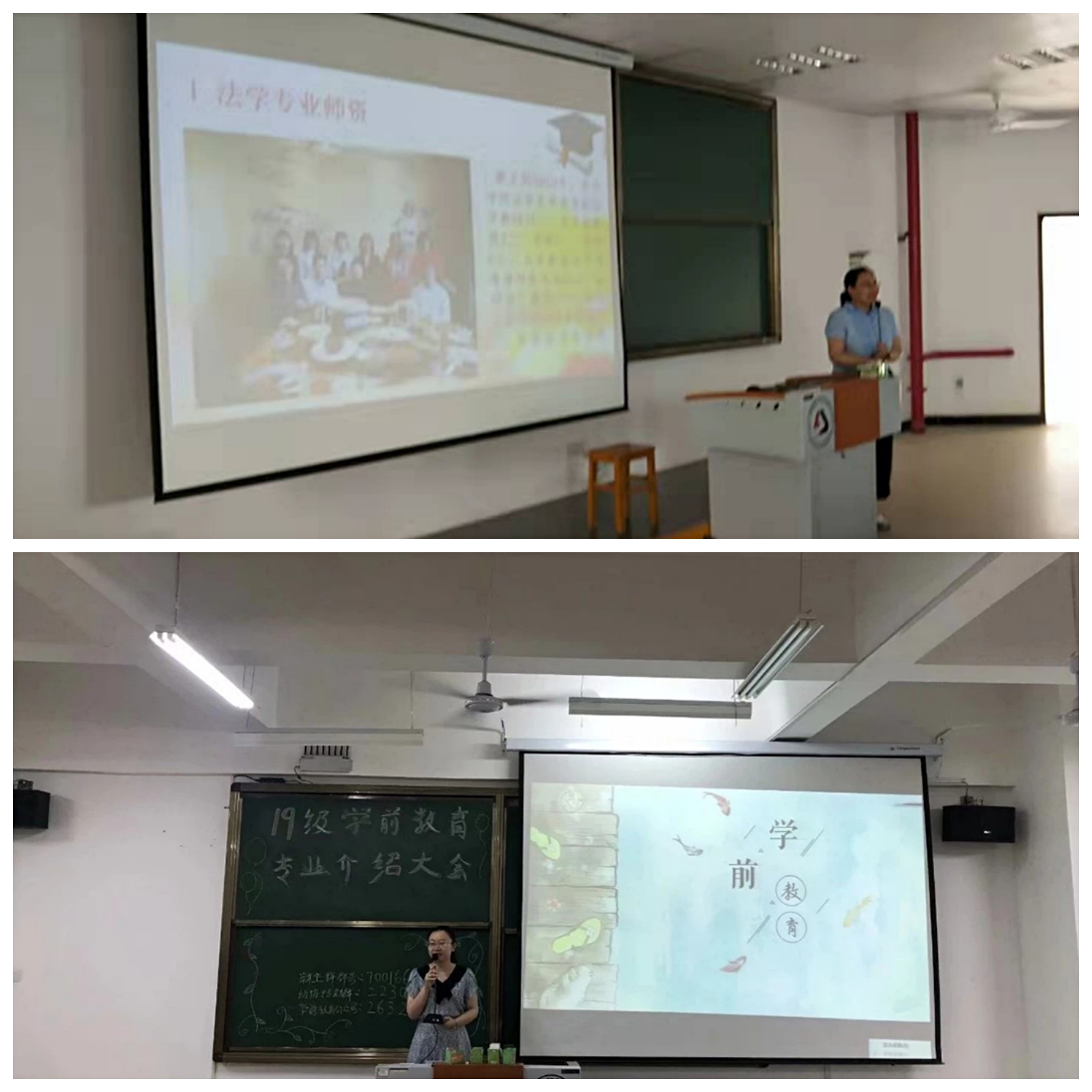 午后空气燥热,但同学们却热情依旧。法学专业系主任张卫容老师通过三个模块、多个方面,为法学新生描绘了一幅专业蓝图,新生们听得“聚精会神”;应用心理学专业系主任王梦老师深入浅出,多维度地分析了心理学的发展历程及未来规划,给同学们留下了很深刻的印象;心理健康协会主任薛洪涛主任同样给新生分析了心理学的发展与契机,让同学们有了更大的勇气和信心;学前教育专业的冉思远老师从员工视角出发,审时度势,全方位、多层次地剖析了学前教育的专业性质和发展方向。