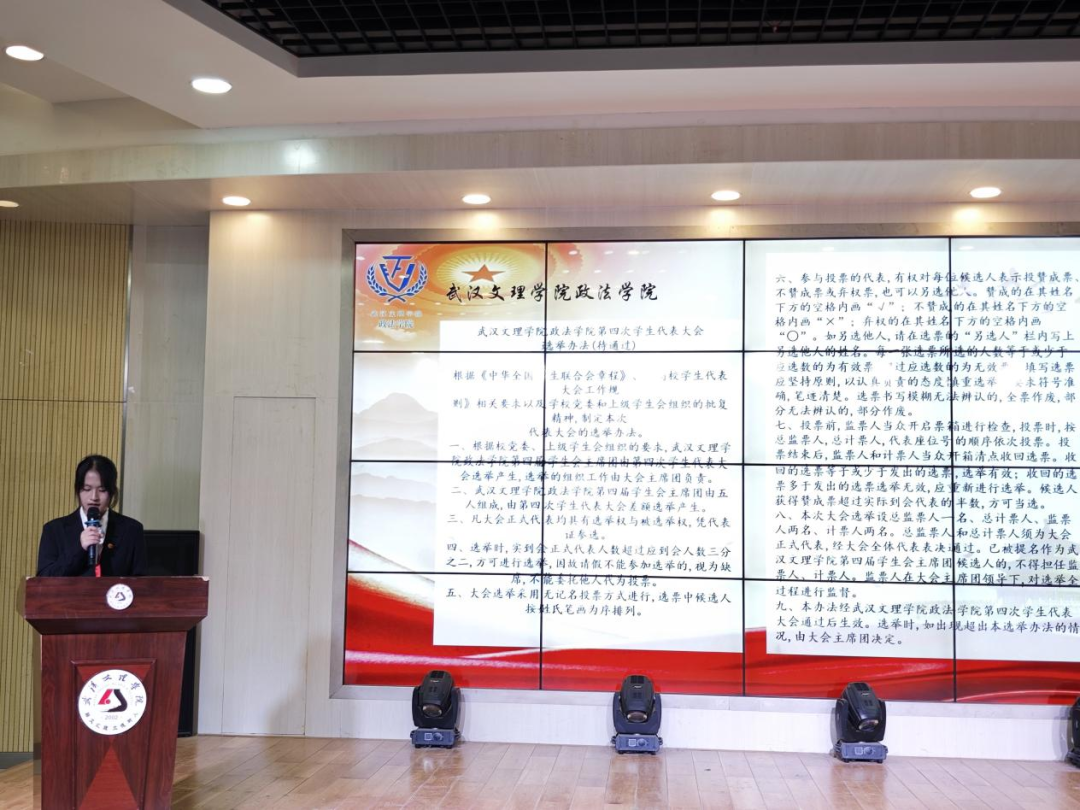 杨双洁同学宣读《英国365集团公司官网第四次员工代表大会选举办法》,全体代表讨论并表决通过。