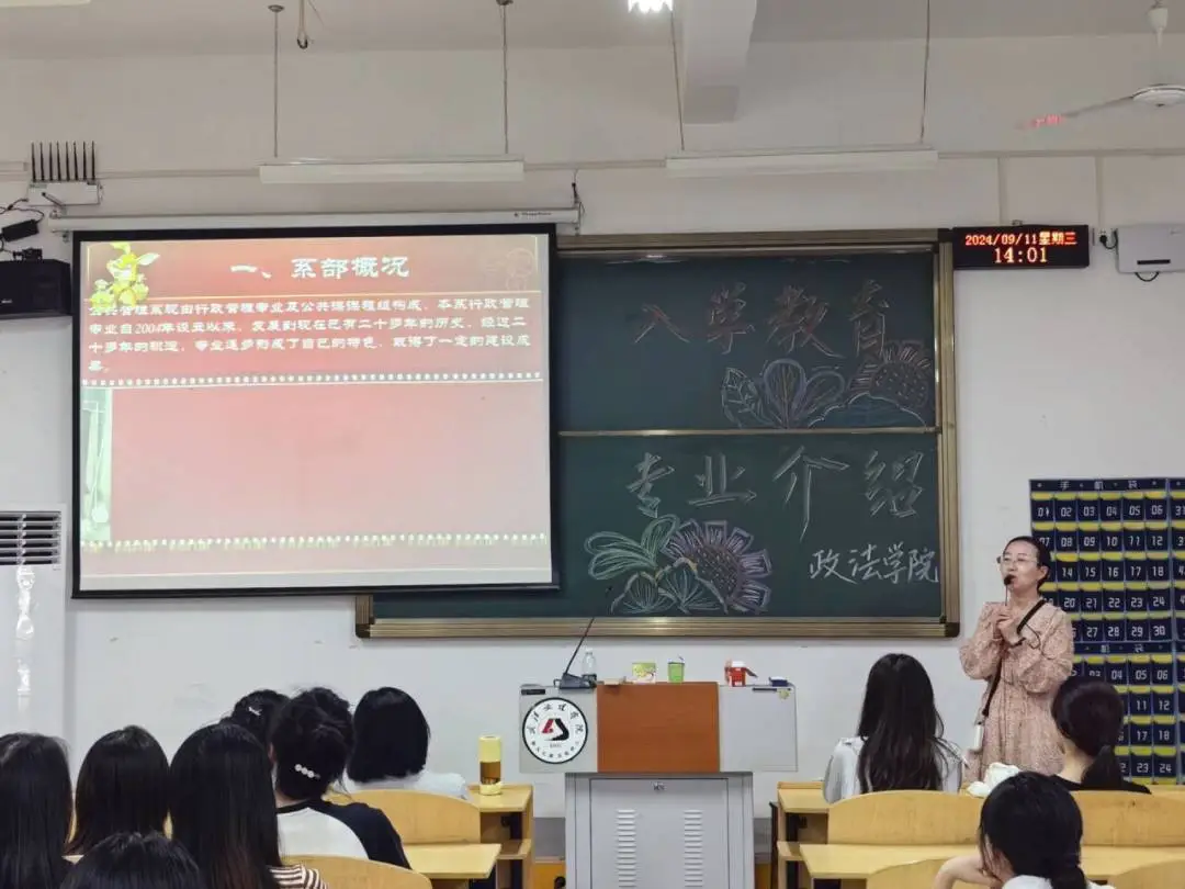 为贯彻落实公司党委对新生入学教育工作的重要指示,帮助新生尽快适应大公司园生活,明确自己的发展奋斗,顺利方向的完成向老员工角色身份的转变,2024年9月11日,英国365集团公司官网于4-118、4-221、4-322组织召开了2024级新生入学教育暨专业介绍大会,本次会议由公共管理系主任马君、法学系主任罗平、法学系副主任吴蕾主讲,24级全体新生到会参加。