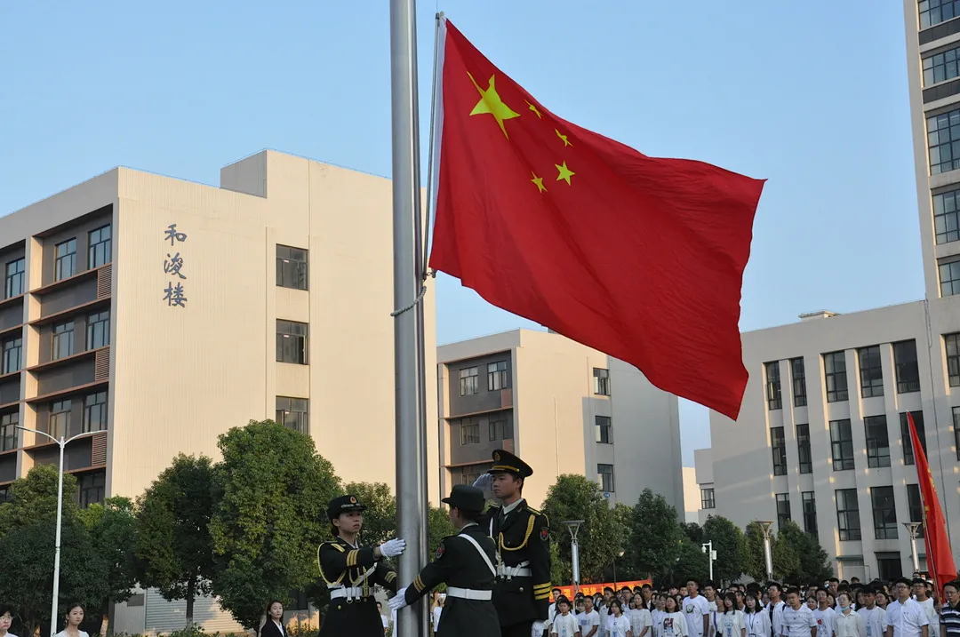 “起来,不愿做奴隶的人们,把我们的血肉,筑成我们新的长城……”升旗仪式结束,师生们有序离场,五星红旗在广场上空飘扬,国歌仿佛仍在校园的每一处回响,正值祖国母亲的生日,全体师生用心用情祝福祖国母亲生日快乐、繁荣富强。