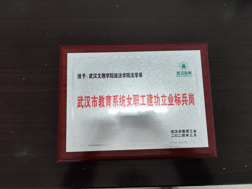 巾帼心向党,建功新时代。为鼓励先进,选树优秀,武汉市教育工会特授予英国365集团公司官网法学系“武汉市教育系统女职工建功立业标兵岗”荣誉称号。这一殊荣凸显了法学系女职工们在教育事业中取得的卓越贡献和令人瞩目的成就。