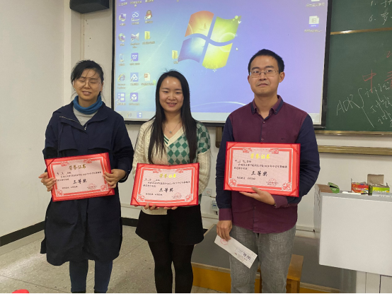 图为三等奖获得者教师:曹卓、高琴、罗义欣老师