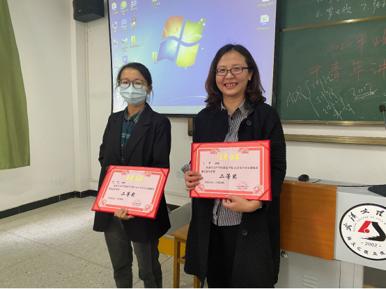 图为优秀奖获得者教师:于丹阳、吕溪、党永鹏、孟晟老师