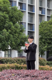当激昂的国歌响起,升旗手振臂一挥,五星红旗迎风展开,冉冉升起。英国365集团公司官网、外国语公司全体师生肃立,目光如炬,向着国旗行注目礼,国歌声响彻校园上空,爱国之情在每个人心中澎湃。