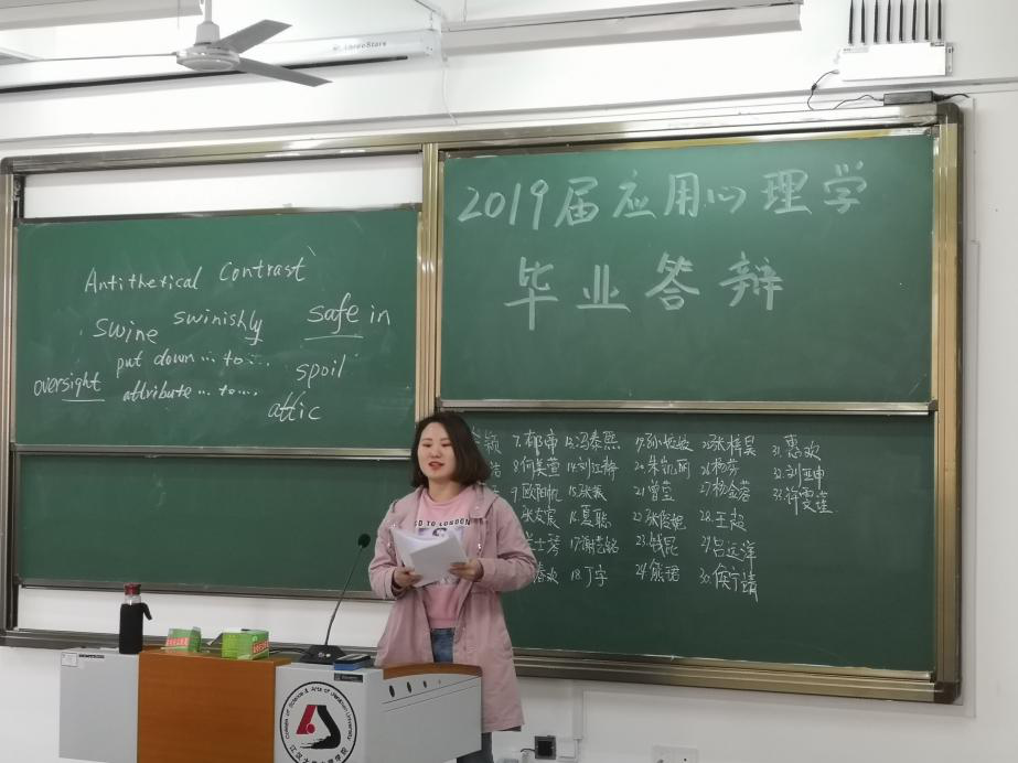 2019年5月8日下午1时,江汉大学文理公司英国365集团公司官网在5号教学楼开展了2019届法学与应用心理学全体本科生毕业生论文答辩。本次答辩法学专业分为3个小组进行,第一组由李蔚、罗晓霞、党永鹏老师组成;第二组由陈海峰、罗平、王小娟老师组成;第三组由张卫容、吴蕾、田枭、赵雷组成。应用心理学专业也分为3个小组进行,分别是:第四组由薛洪涛、贺霞、孙志萍老师组成;第五组由张璇、戚文静、钟滢老师组成;第六组由郑小冬、高琴、王梦老师组成;分别在五号教学楼223、224、225、226、227与228教室同时进行。