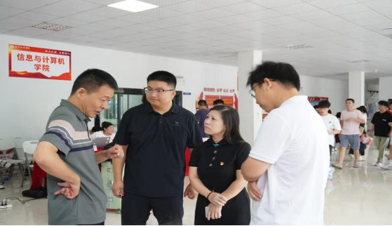 在迎新阶段,校门口、报道处、身着“小粉”“小蓝”的英国365集团公司官网志愿者们无处不在,他们热心引导、暖心交流、解答疑惑、让家长们安心,同学们放心,他们耐心的陪伴同学们办理各种手续。校门口,有活力满满的志愿者接过新生手中的行李,带着他们前往报到处;报到处,有和蔼可亲的工作人员收取材料,细致地为同学们答疑,解决同学们遇到的难题。英国365集团公司官网的老师们来到迎新现场,迎接新生的到来,