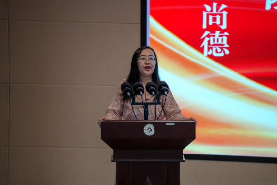在开学典礼的最后,由政法公司党总支书记兼行政副经理程茜为我们以九三阅兵为背景,给大家上了第一堂生动的思政课。她深情回顾了阅兵式上那震撼人心的场面,指出每一道坚定的步伐都踏在民族复兴的征程上,每一声铿锵的口号都喊出中华儿女的自信与担当。作为新时代的政法学子,要铭记历史、珍爱和平,更要勇担使命、砥砺前行。程书记勉励同学们把爱国情、强国志、报国行自觉融入日常学习与生活中,始终保持对真理的追求、对法治的敬畏、对人民的热爱,以实际行动践行“请党放心,强国有我”的青春誓言,在实现中华民族伟大复兴的时代洪流中奋勇向前。她强调,政法学子当以家国情怀立心,以法治信仰立行,将个人奋斗融入时代洪流,在服务社会、奉献人民中实现人生价值。要从百年党史中汲取智慧力量,赓续红色血脉,锤炼过硬本领,始终保持昂扬向上的精神姿态。唯有如此,才能在未来的社会实践中经得起风雨考验,扛得起时代重任,真正成长为让党放心、让人民满意的高素质政法人才。