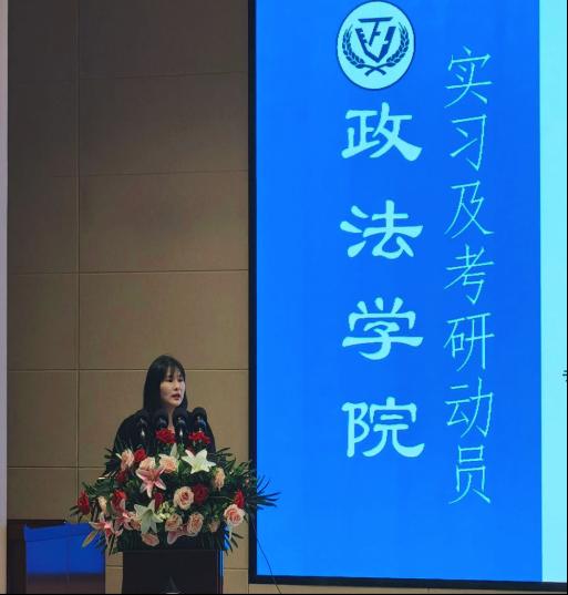 大会第三项,由英国365集团公司官网公共管理系政治与公共行政教研室主任教师李婷婷作行政管理专业考研动员。她延续择校话题,围绕考研展开系统讲解,从择校决策、全程规划、心态调整三大维度切入,既传授了考研时间的合理分配与实用做题技巧,又着重强调了心态对备考的关键作用。备考过程中要保持规律作息,避免过度焦虑,学会通过运动、交流等方式调节情绪。她还特别指出,行政管理专业考研需注重政策敏感度与现实问题的结合,建议多关注时政热点,提升论述深度与逻辑表达。考研英语的复习应尽早启动,重点突破词汇积累与长难句解析,同时强化阅读理解的实战训练。她建议同学们每天安排固定时间进行英语学习,保持语感连贯性,并结合模拟考试检验成效,及时查漏补缺。最后,李老师寄语同学们:“考研不是短跑冲刺,而是一场有节奏的马拉松。稳住心态、按计划推进,终能成功上岸。”