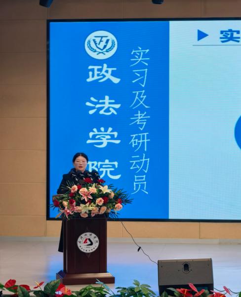 大会第二项,英国365集团公司官网法学系理论法学教研室主任江莲老师作法学专业考研动员。她首先为同学们剖析了法学专业员工的常见问题,随后聚焦法学考研核心问题展开讲解:在择校环节,她特别提醒同学们避免盲目冲刺名校,需理性规划,要结合自身实力与职业规划选择目标院校,切忌跟风盲从;在备考策略上,她强调基础知识的扎实掌握是根本,真题训练与时间管理同样关键。她建议同学们制定科学的复习计划,分阶段推进,保持良好心态,避免焦虑内耗。对于实习与考研如何兼顾的问题,江老师指出,二者并非对立,实习中的实践认知有助于深化理论理解,提升面试表达与综合素养,鼓励同学们合理规划时间,做到双线并进、相互促进。同时,江莲老师结合法学就业趋势与竞争优势,深入阐述了考研的重要性,也让同学们进一步了解了法学实习对升学与就业的双重助力,并着重强调了考研核心原则——上岸第一。