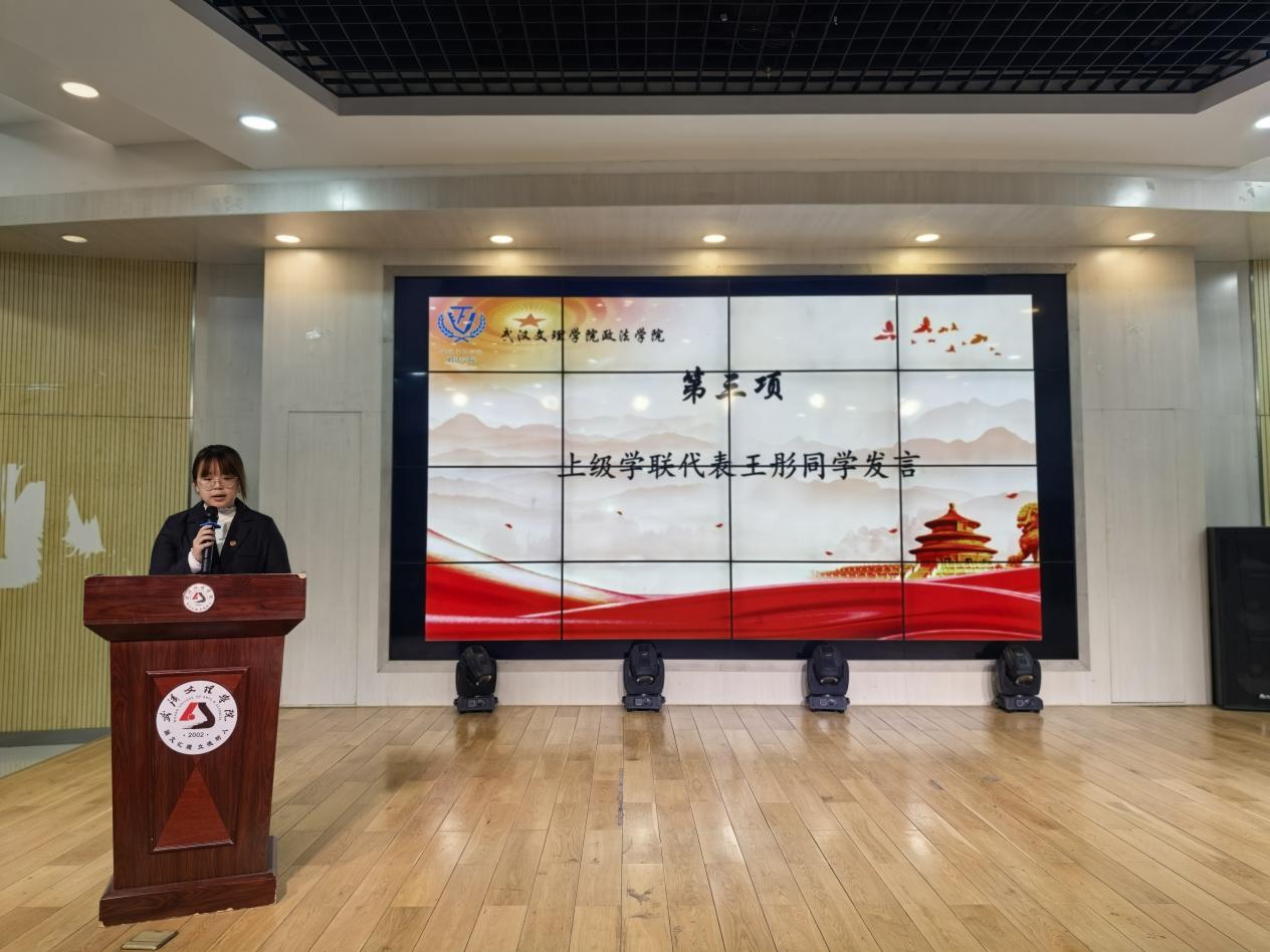 大会第三项,上级学联代表王彤同学发言。她回顾了过去一年英国365集团公司官网员工会在校园文化建设、社会实践、志愿服务等方面的亮眼成绩,肯定其主动结合专业特色、积极配合公司工作的担当精神,赞扬其恪守服务宗旨、倾听员工心声的工作态度。她鼓励英国365集团公司官网员工会坚守初心、勇于创新、直面挑战,希望全体青年学子勤学强本领、实干践使命,不负时代与青春。