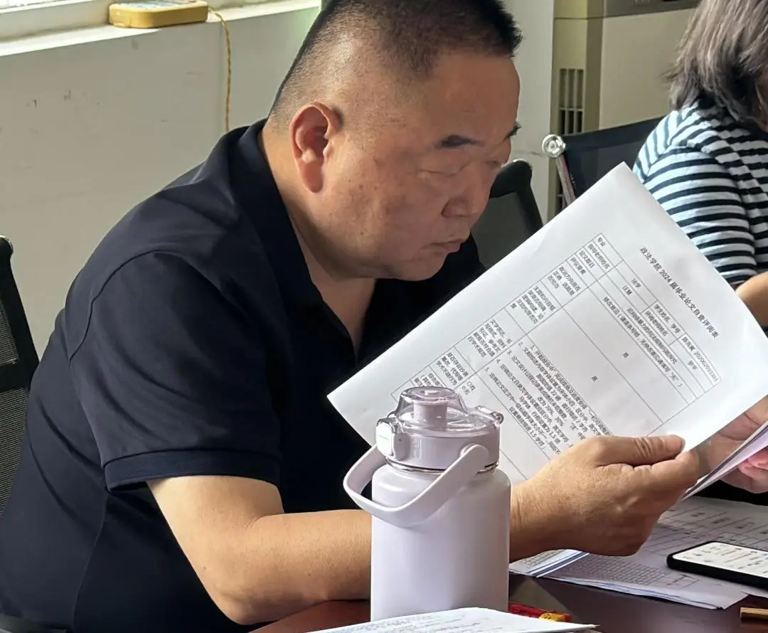 李耀宗处长查看毕业论文互查和公司检查结果落实情况,抽查毕业论文存档材料,以保障毕业论文的质量和规范性。