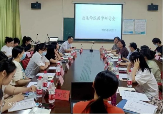 本次研讨会共讨论了三个议题:一是如何申报省级课题。由法学系主任吕溪老师分享省教育科学规划课题成功申报经验;二是如何撰写科研论文。由张晗老师就发表期刊论文作经验交流;三是如何进行《习近平法治思想概论》课程建设。由习近平法治思想概论教研室主任张卫容老师带领全体老师进行探讨。